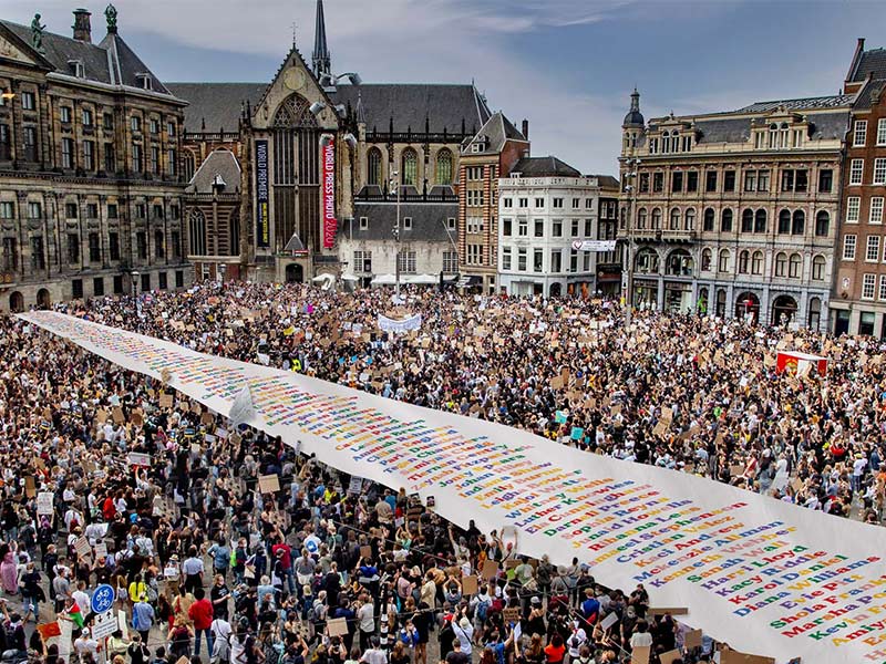 We starten om 1300 uur op de Dam en gaan vanaf daar met onze protestborden hoog in de lucht naar het eindpunt. Amsterdam Climate March Klimaatmars Klimamarsch. Climate March 2021 Amsterdam.