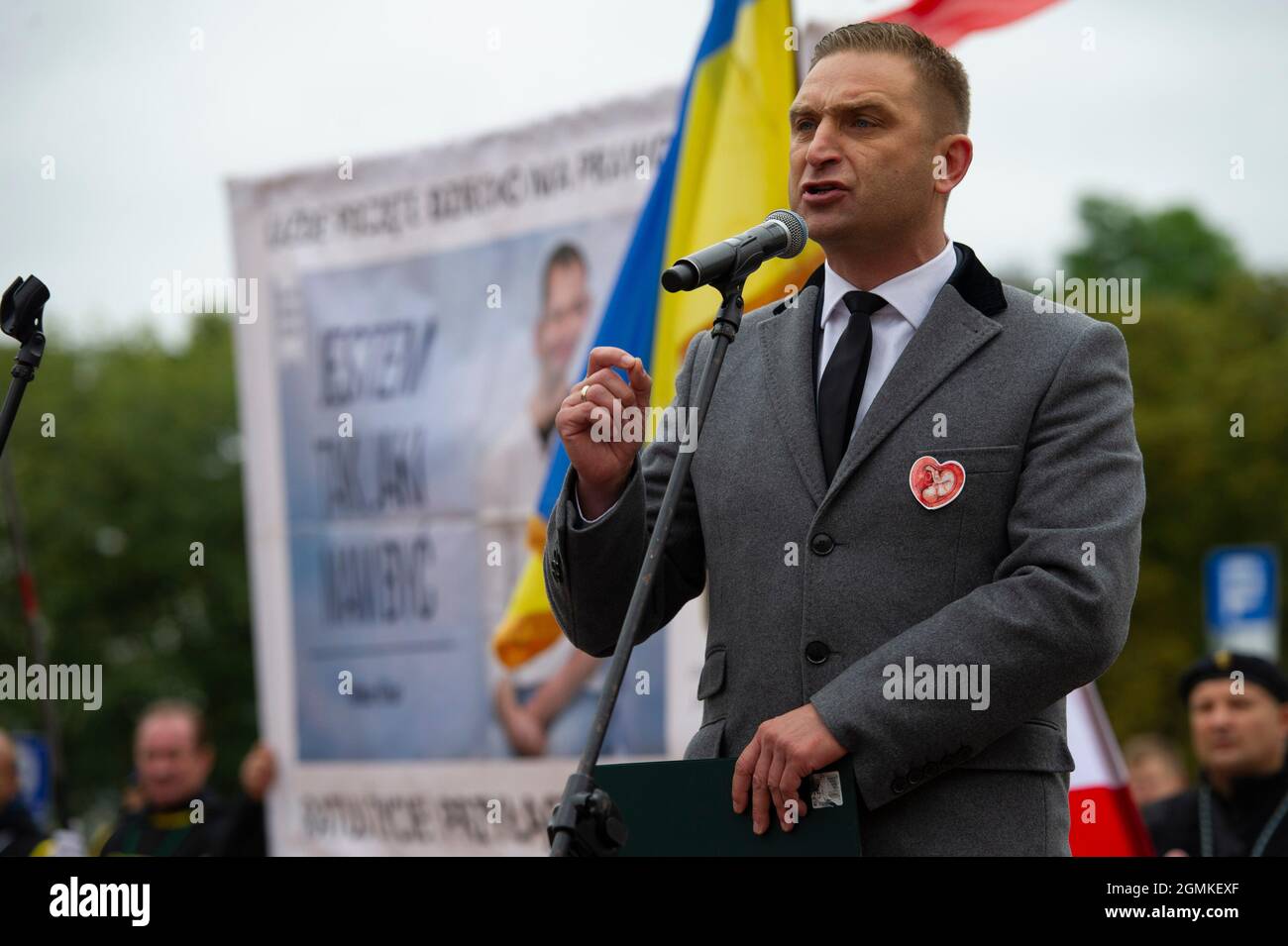 Warsaw Poland Poland 19th Sep 2021 Robert Bakiewicz Far Right And Nationalist Activist Addresses The Crowd During The Pro Life March On September 19 2021 In Warsaw Poland Several Hundreds People Took Part In